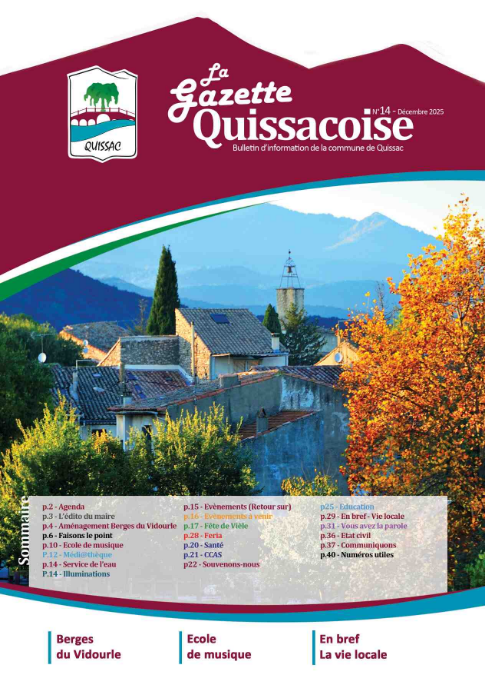 Retrouvez toutes les informations municipales dans la Gazette quissacoise !