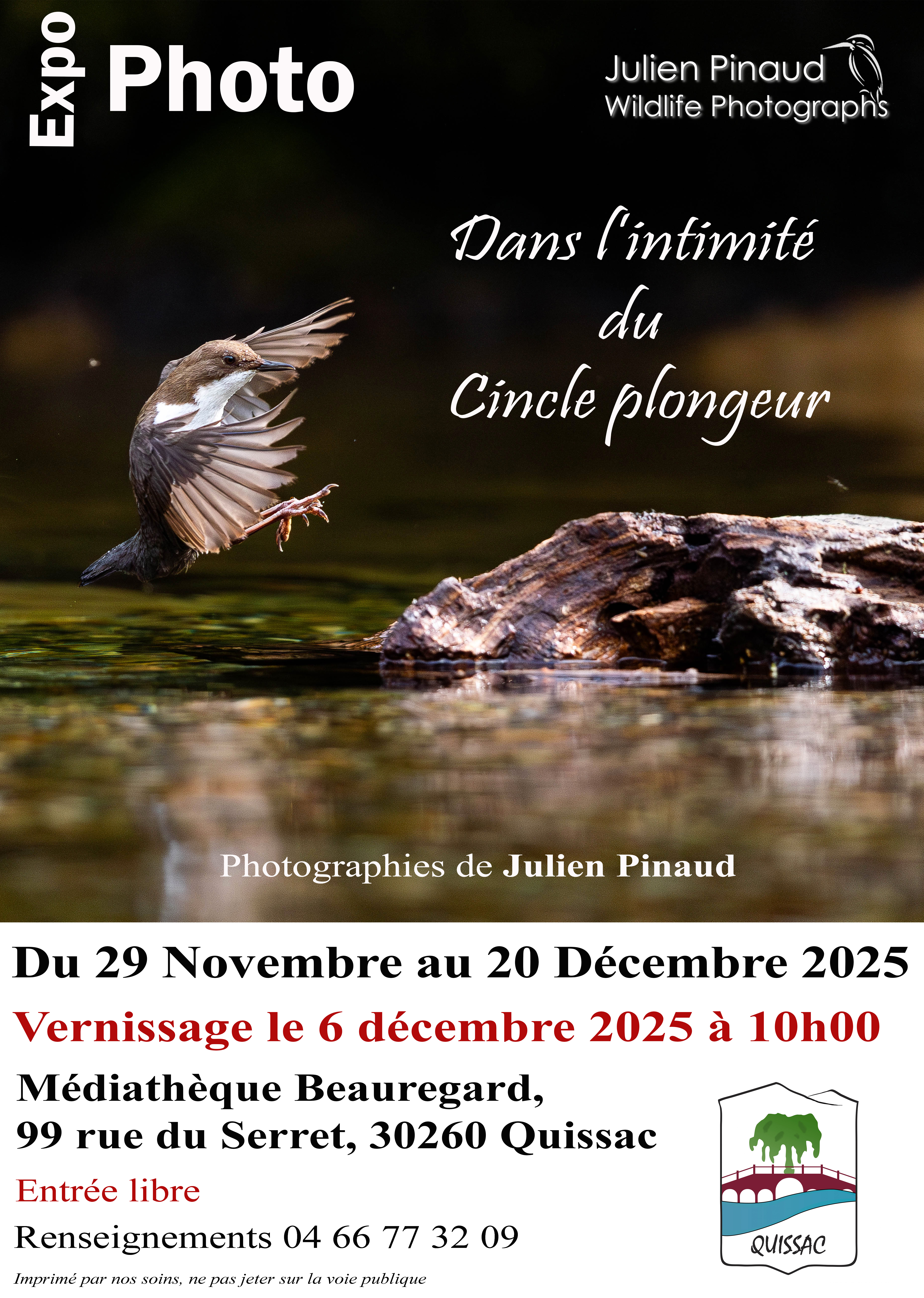 – Exposition avec Julien Pinaud, inauguration le 6 décembre à 10h, avec l’association C.O.Gard (centre ornithologique et protection des oiseaux)