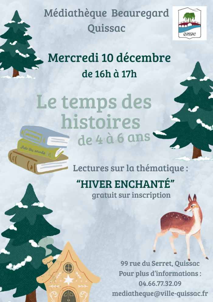 – Lecture pour les 4-6 ans sur le thème de l’hiver le mercredi 10 décembre à 16h