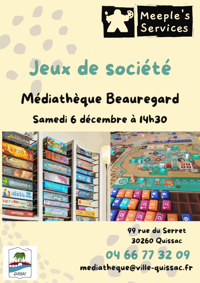 – Jeux de société avec l’animateur Meeple’s Services le 6 décembre de 14h30 à 18h (il emmène pleins de jeux et les fait tester aux usagers, de quoi donner des idées de cadeau de Noël au passage)