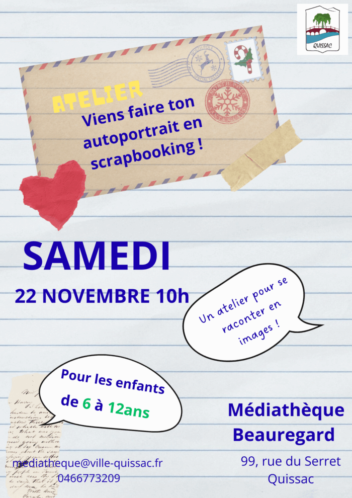 - Samedi 22 à 10h – Atelier « Portrait en scrapbooking » avec Béatrice Serre