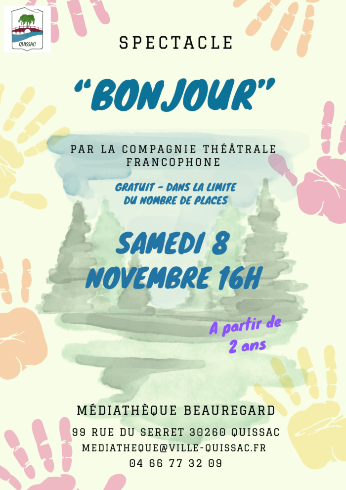 - Samedi 8 novembre à 16h – Spectacle « Bonjour » pour un public à partir de 2 ans :