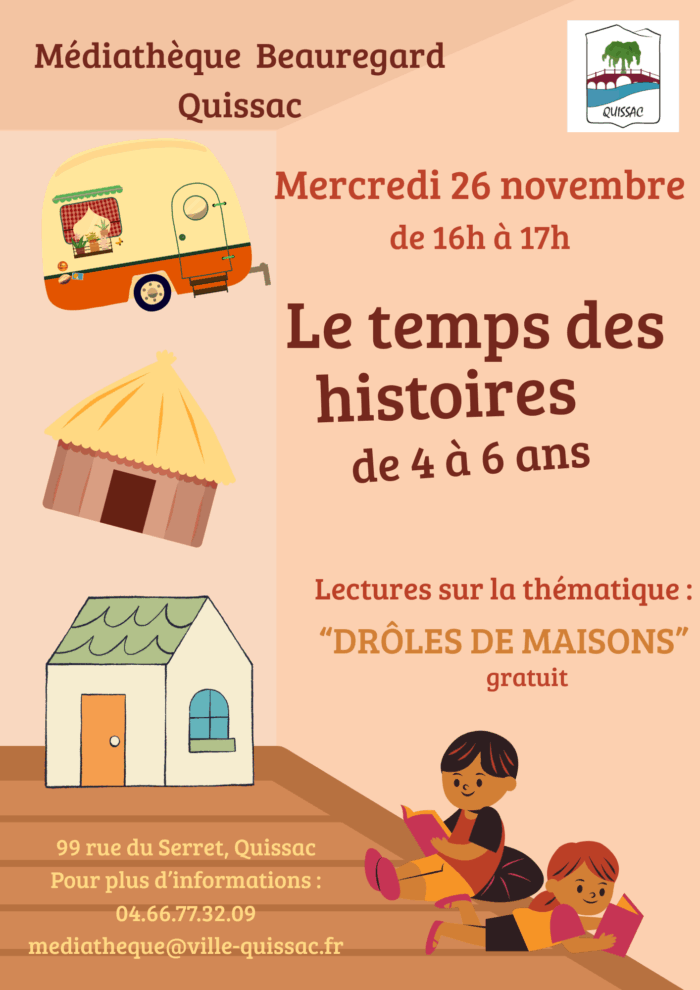 - Mercredi 26 à 16h – lecture pour les 4 à 6 ans sur le thème des « maisons »