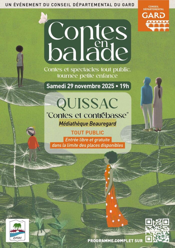 - Samedi 29 à 19h – Spectacle « Conte et contrebasse » à partir de 7 ans. Ce spectacle est organisé par le département du Gard