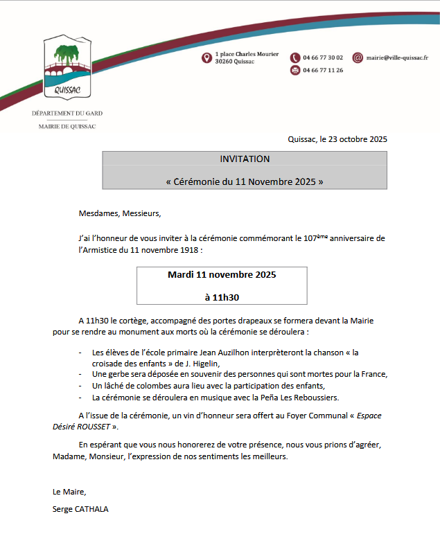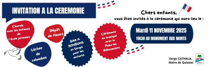 Quissacoises, quissacois, enfants & parents, grand-parents, vous êtes conviés à la belle cérémonie qui se tiendra le :
