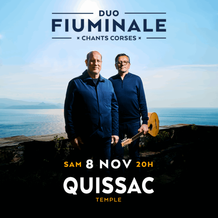 Fiuminale est un duo formé par Maxime Merlandi et Jean Philippe Guissani. Après 20 ans passés au sein de l’ensemble polyphonique corse Barbara Furtuna et des centaines de concerts donnés à travers le monde, les deux artistes se retrouvent pour partager les chants qui ont jalonné leur parcours. Chants traditionnels, sacrés et créations, ils nous racontent en musique une amitié de plus de 40 ans sans jamais tomber dans la nostalgie. C’est au pied du Capicorsu, dans le Nebbiu où ils ont grandi qu’ils continuent à puiser leur inspiration, nous racontant la Corse, loin des clichés et des lieux communs. À travers un répertoire choisi, ils égrènent avec passion les sentiments que procure une vie de musique et de rencontres.
