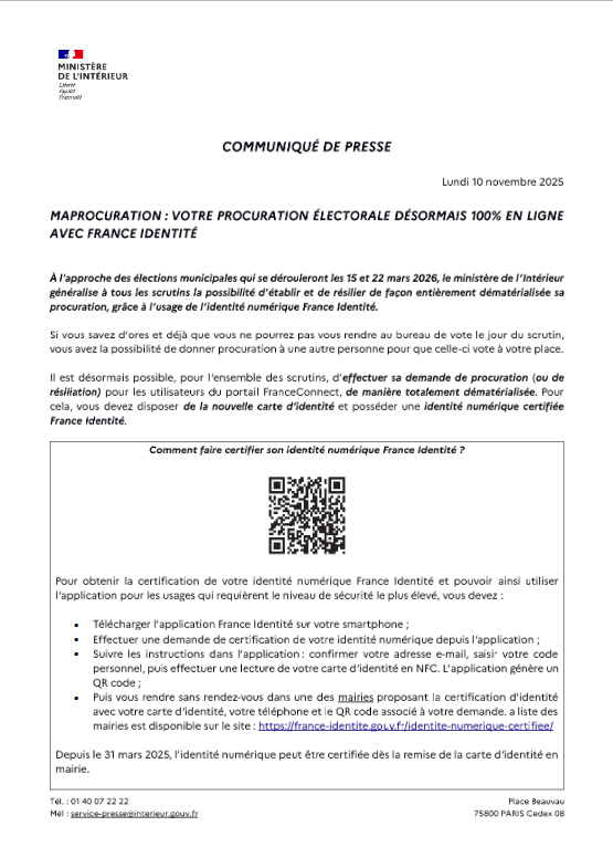Voter par procuration : possible désormais 100% en ligne avec France Identité