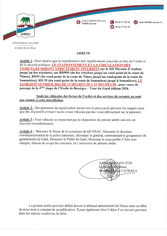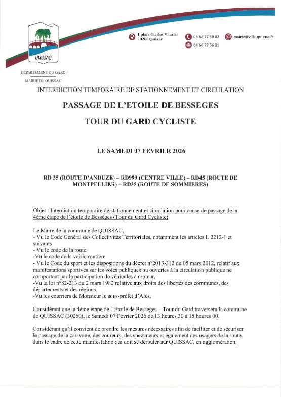 🗓️ Le tour du Gard passera à Quissac le samedi 7 février 2026 (environ vers 14h15 …)